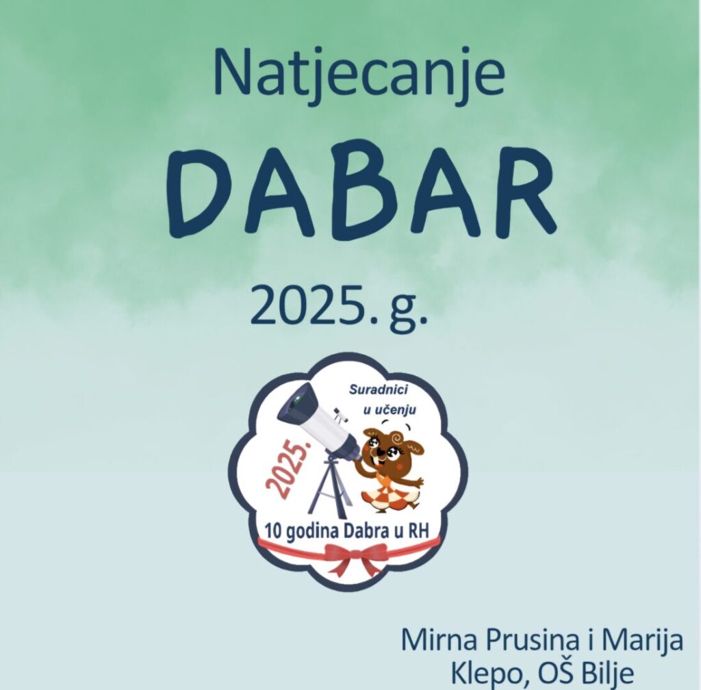 I ove školske godine naši su učenici sudjelovali na natjecanju Dabar. Dabar je međunarodno natjecanje iz informatike i računalnog razmišljanja, a održavalo se od 10. do 14. studenog 2025. g. Rezultate natjecanja pogledajte klikom na sliku ispod.